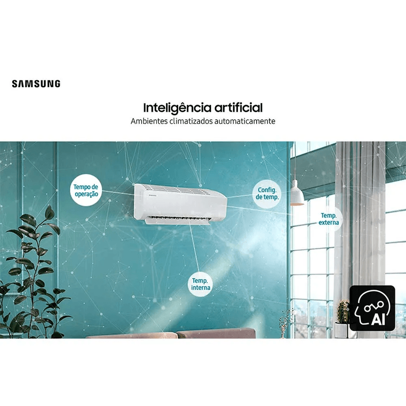 Ar-Condicionado Samsung Digital Inverter Ultra AI 12.000 BTUs Frio. Inteligência artificial, máximo conforto e economia inteligente de energia.