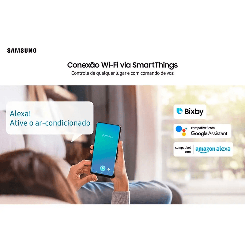 Casa Climatizada Antes de Você Chegar – Welcome Cooling. Com o modo Welcome Cooling, disponível no aplicativo SmartThings, o ar-condicionado detecta sua localização pelo smartphone e liga automaticamente quando você estiver a uma distância pré-definida de casa. Assim, você chega e encontra o ambiente já climatizado, com sua temperatura e modo preferidos.