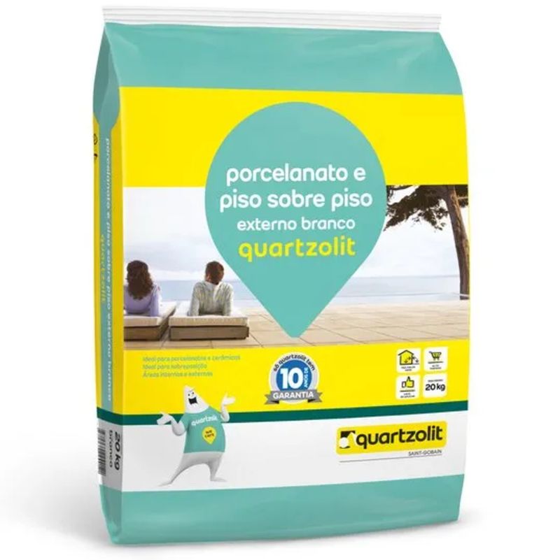 A Argamassa Quartzolit Piso sobre Piso Externo Branco - 20 kg é ideal para assentamento de revestimentos cerâmicos em áreas externas, proporcionando alta aderência e resistência. Sua fórmula especial permite aplicar novos pisos sobre pisos antigos, sem necessidade de remoção, economizando tempo e esforço na obra. Com excelente desempenho em ambientes expostos ao sol e à chuva, garante fixação segura e durabilidade ao revestimento.