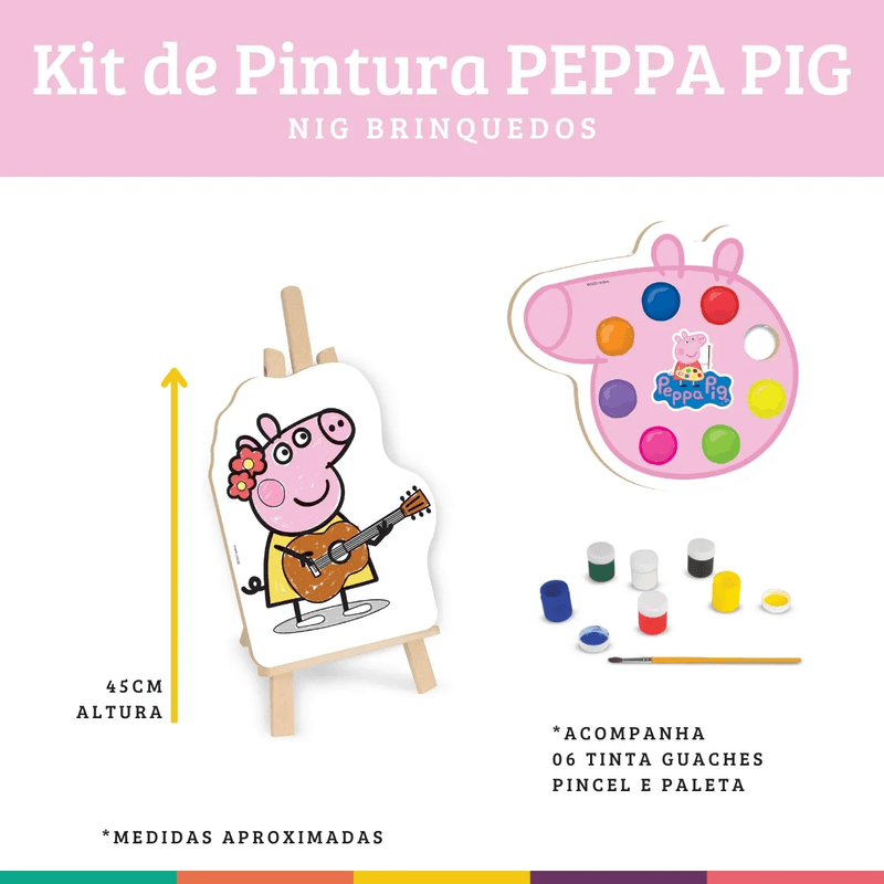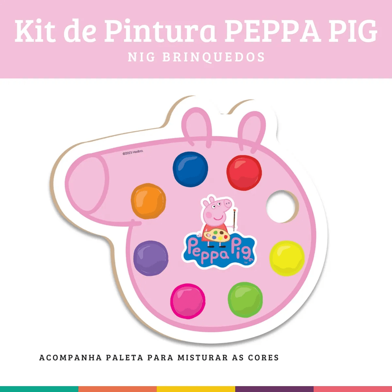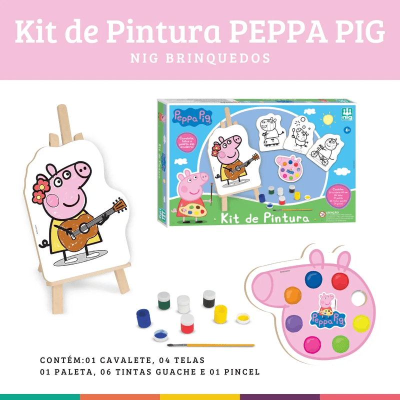 O Brinquedo Kit Nig Pintura Peppa Pig é perfeito para estimular a criatividade e a imaginação das crianças! Com o tema da adorável Peppa Pig, o kit vem com desenhos divertidos para colorir e diversos acessórios de pintura, como tintas e pincel, proporcionando horas de diversão educativa. Ideal para desenvolver coordenação motora, concentração e senso artístico de forma lúdica e segura.