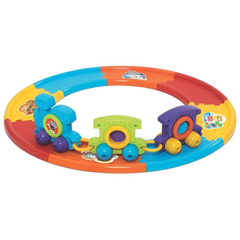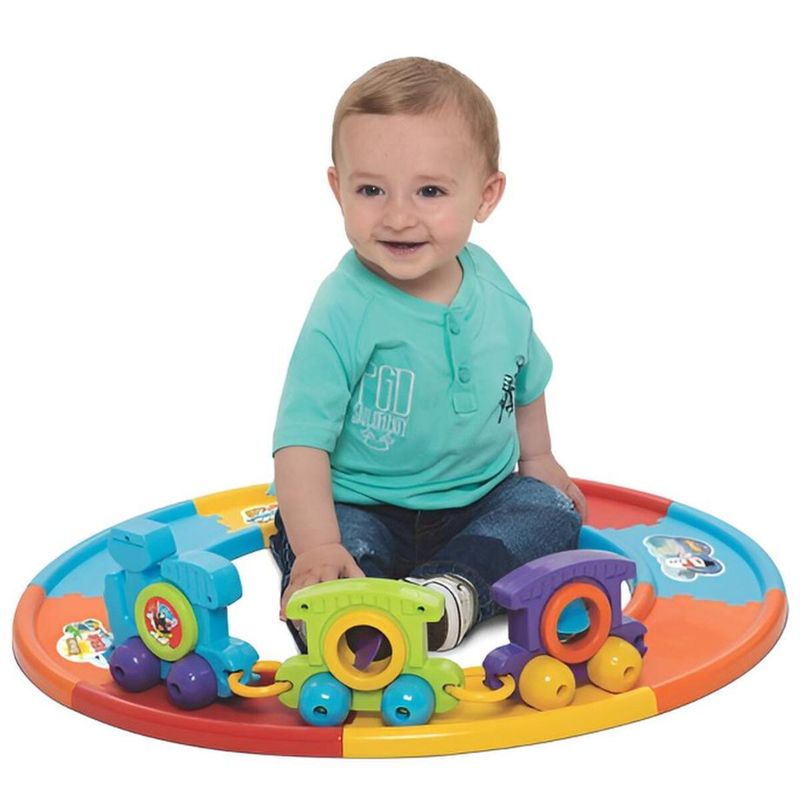 Piuiii... o trem da diversão vai partir! O Baby Train Express da Mercotoys é um brinquedo produzido em plástico atóxico, leve e resistente e encantador que estimula a coordenação motora e a imaginação das crianças. O conjunto é composto por 1 locomotiva, 2 vagões e 8 trilhos montáveis e coloridos, perfeitos para criar um circuito divertido em formato de círculo. As crianças podem empurrar o trenzinho pelos trilhos, encaixar os vagões e aprender sobre as estações do ano, enquanto se divertem com um brinquedo seguro e educativo.