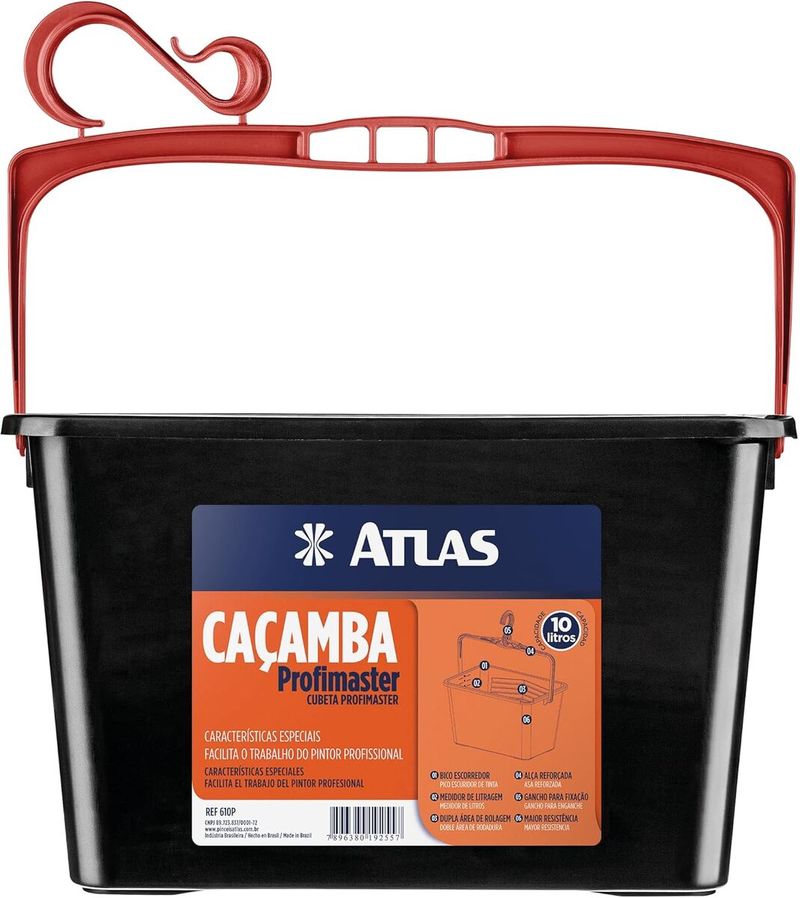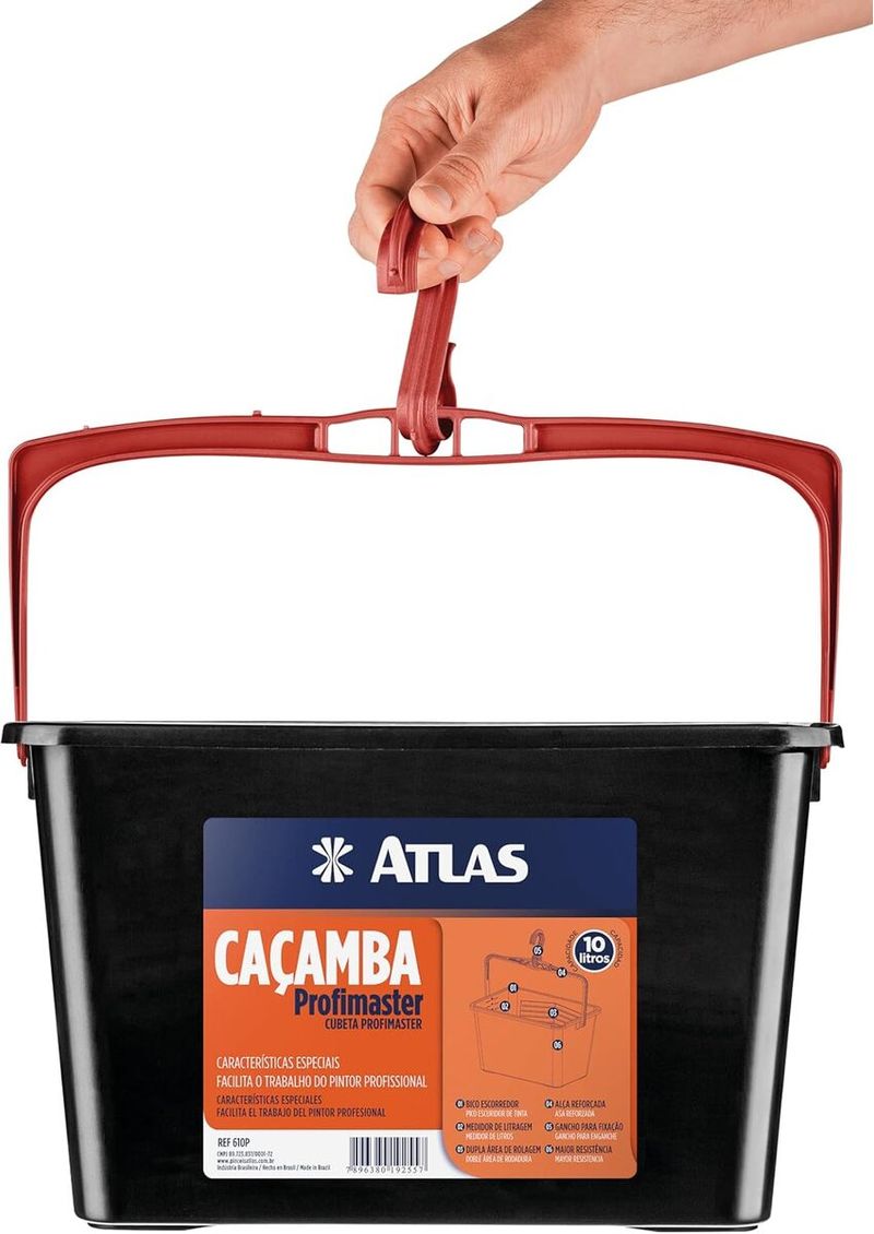 A Caçamba Atlas Plástica Profimaster para Pintura é o acessório ideal para garantir praticidade e organização durante qualquer projeto de pintura. Fabricada em plástico resistente e de alta durabilidade, ela possui design amplo que facilita o armazenamento e manuseio da tinta. Sua superfície interna texturizada permite retirar o excesso do rolo com eficiência, proporcionando aplicação uniforme e reduzindo desperdícios. Leve, ergonômica e fácil de transportar, é a companheira perfeita para profissionais e para quem realiza pinturas domésticas.
