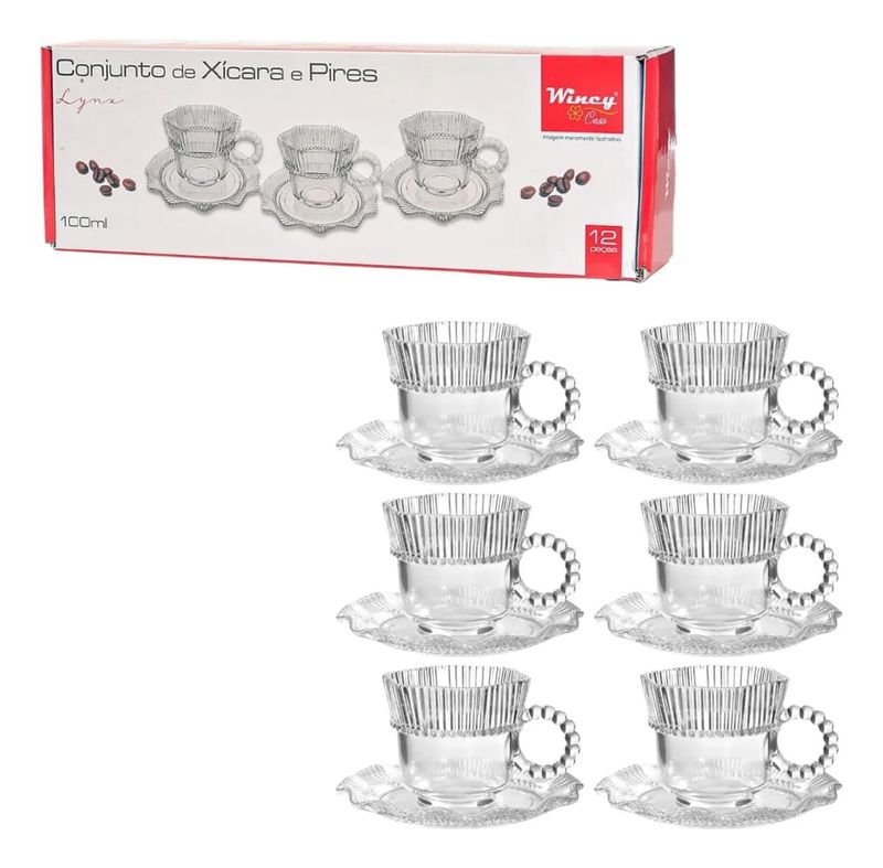 O Conjunto Wincy de Xícaras com Pires Linx Vidro - 12 Peças une elegância e praticidade para servir café ou chá com estilo. Fabricado em vidro de alta qualidade, o conjunto é resistente, fácil de limpar e perfeito para uso diário ou ocasiões especiais. Com design moderno e transparente, valoriza a apresentação das bebidas, trazendo um toque sofisticado à mesa. Ideal para quem aprecia bom gosto e funcionalidade, o conjunto inclui 6 xícaras e 6 pires, oferecendo beleza e durabilidade em cada detalhe.