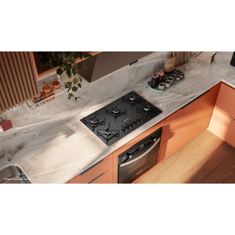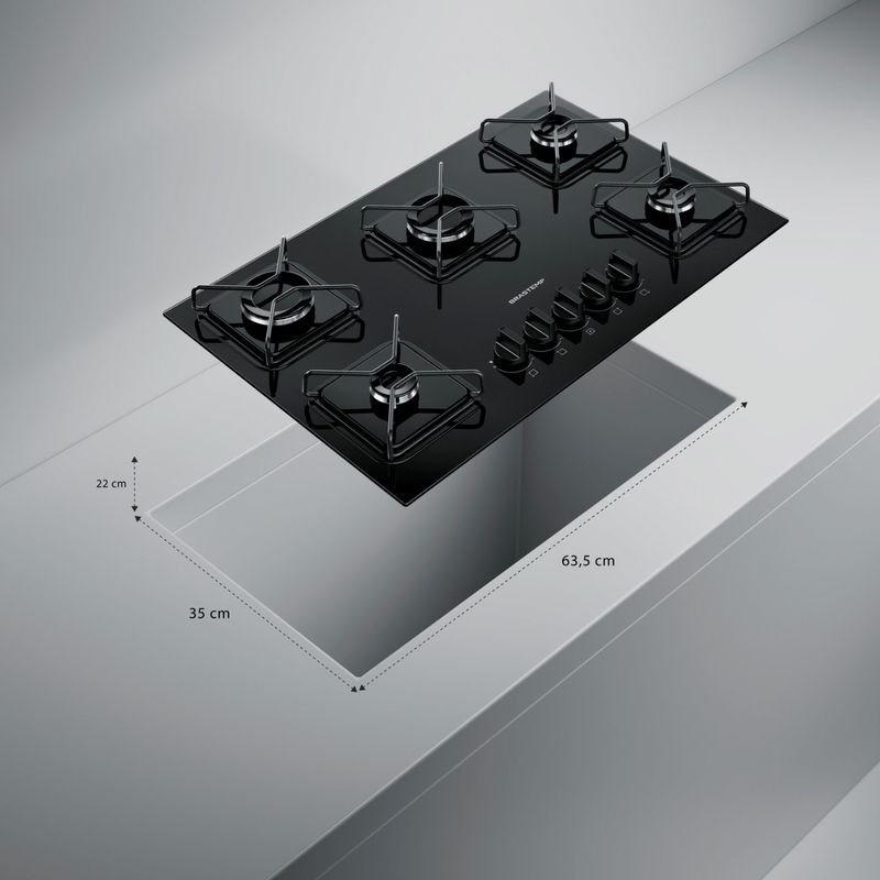 Cooktop 5 Bocas a Gás Brastemp BDD75BE | Grades de Ferro Aramado e Chama Simmer.