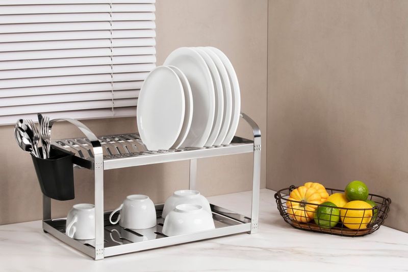A solução perfeita para quem tem pouco espaço e gosta de ter tudo organizado na pia é o Escorredor de louça em aço inox Brinox de dois andares para 12 pratos com porta talheres preto Suprema Brinox. O Escorredor de louça inox Brinox possui diversos recortes alinhados ao seu design. Feito em material totalmente em aço inoxidável polido, possui brilho e sofisticação, sem oxidar o produto ao longo do uso. Robusto e durável, o Escorredor acompanha segundo escorredor removível para talheres, em plástico polipropileno preto. Ideal para uso em cozinhas domésticas, perfeito para grandes e pequenas famílias pois é compacto e funcional para o dia a dia. Pode ser usado para pratos, talheres e depois utensílios, bem como para elementos maiores como caçarolas e panelas. E após o uso, nossa dica é secar o Escorredor para que mantenha sempre o brilho. Lave-o com esponja macia, água corrente, sabão ou detergente neutro.