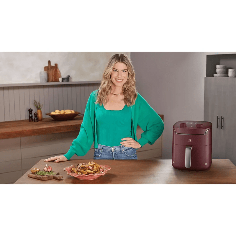 Mais praticidade no uso:Com design moderno e pensada junto à Rita Lobo, a Air Fryer Electrolux EAF41 é perfeita para quem busca uma cozinha mais saudável, prática e cheia de sabor.