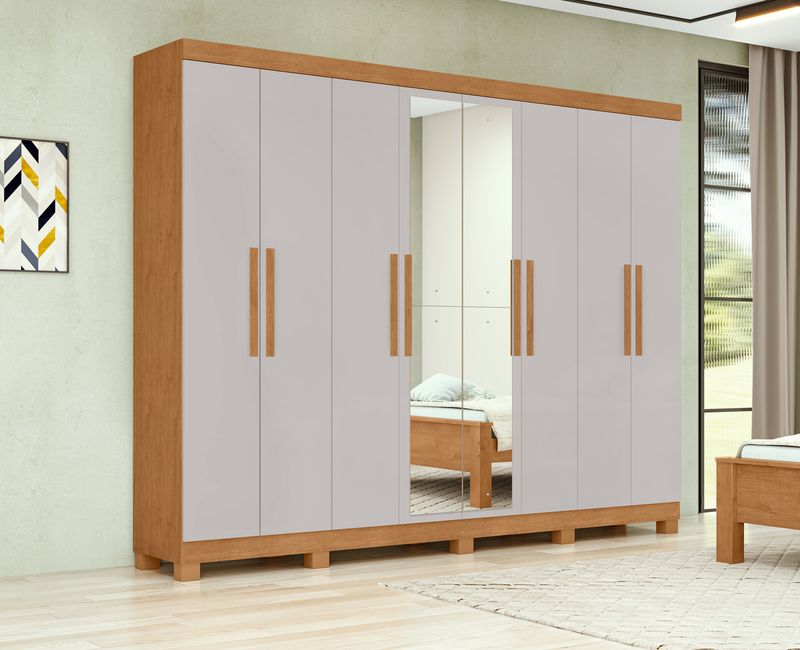 Guarda-Roupa Lopas Andara Soft - Cinamomo/Off White combina design moderno e funcionalidade para valorizar o ambiente. Com amplo espaço interno, permite melhor organização de roupas e acessórios, enquanto o espelho integrado traz praticidade ao dia a dia e sensação de amplitude ao quarto. Os pés elevam o móvel, facilitando a limpeza e acrescentando um toque de leveza ao visual. Ideal para quem busca elegância, conforto e organização em um só produto.