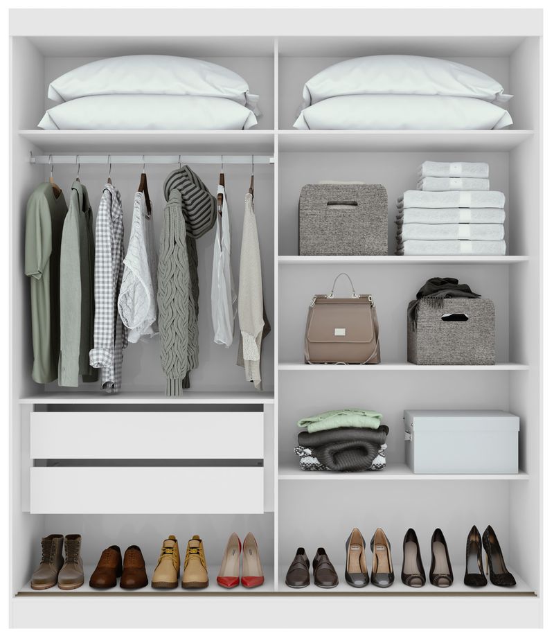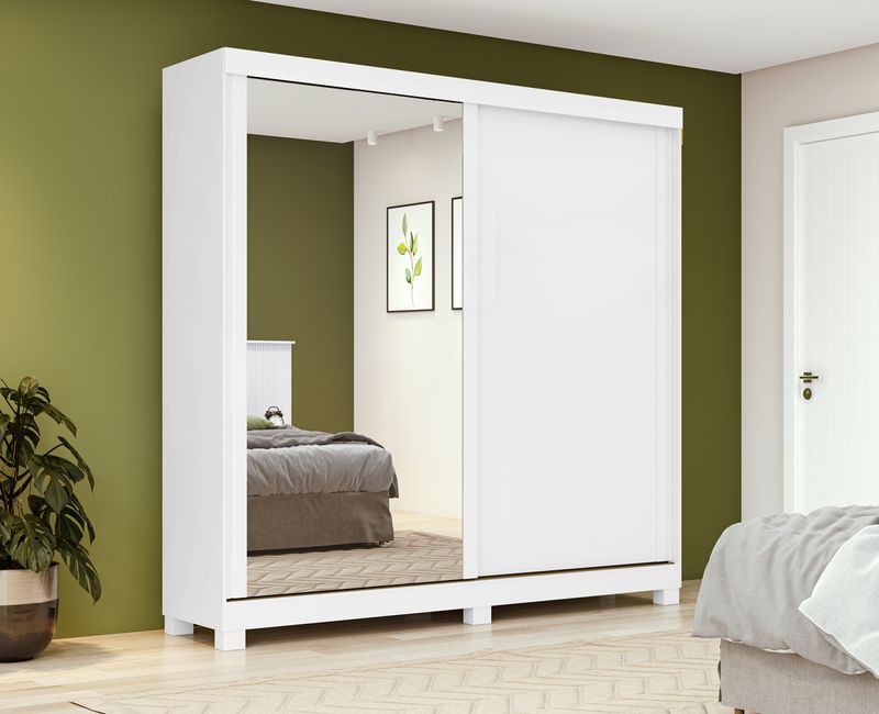 Guarda-Roupa Lopas Zeine com Espelho e Pés - Branco