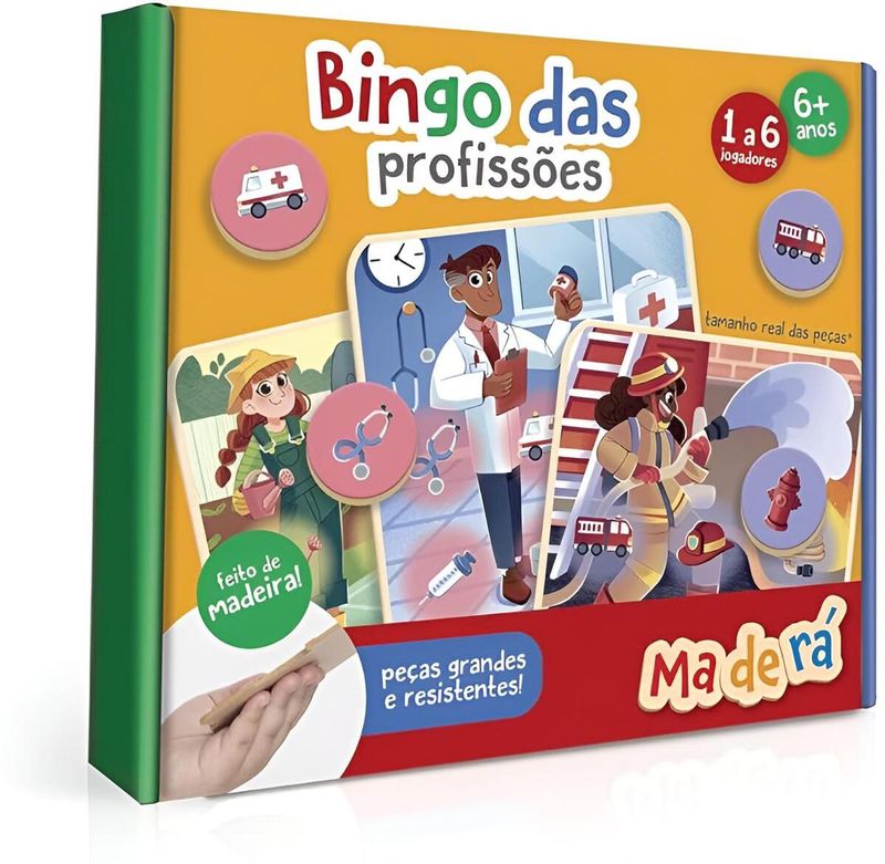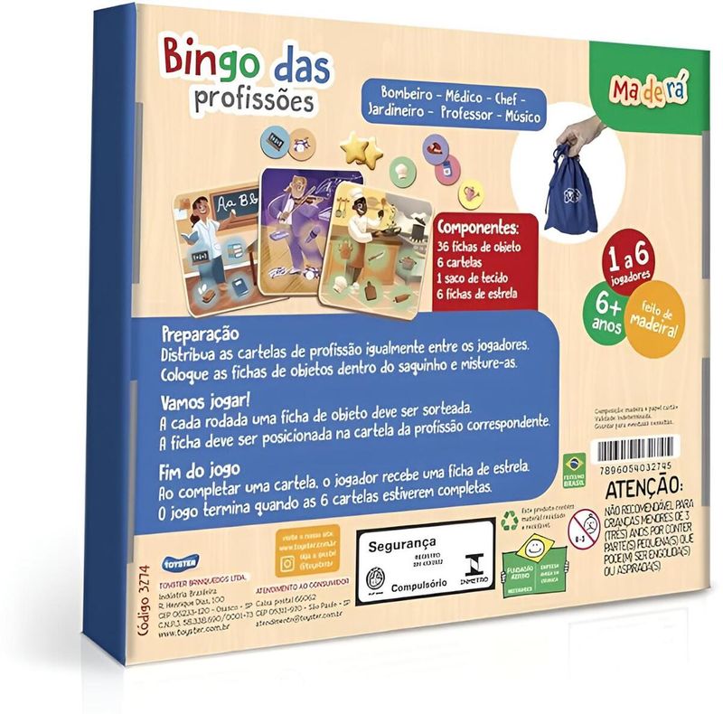 O Bingo das Profissões da Toyster é um jogo educativo que une entretenimento e aprendizado. Com ele, as crianças descobrem seis profissões incríveis – bombeira, médico, chefe de cozinha, jardineira, professora e músico – e associam cada uma aos seus principais objetos de trabalho.