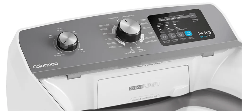 Com 14 kg de capacidade, a Máquina de Lavar Colormaq oferece alto desempenho para quem precisa de mais eficiência no dia a dia. O modo Turbo Lavagem intensifica a agitação e a centrifugação ao máximo, garantindo uma limpeza profunda e eficaz, capaz de remover até as manchas mais difíceis, mesmo em grandes volumes de roupas. Ideal para famílias que buscam potência, praticidade e resultados superiores em cada lavagem.