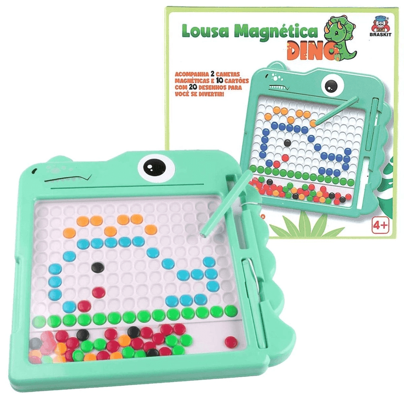 A Lousa Braskit Magnética Dino é uma excelente opção para unir diversão e aprendizado no dia a dia das crianças. Com um tema encantador de dinossauro, ela oferece uma superfície magnética perfeita para desenhar, escrever e soltar a imaginação. Acompanha caneta especial e ímãs que tornam a experiência ainda mais interativa. Fácil de apagar, permite que as crianças criem e recriem quantas vezes quiserem, desenvolvendo suas habilidades motoras e cognitivas de forma prática e divertida. Além disso, é leve e portátil, sendo ideal para levar em passeios ou usar em casa, proporcionando entretenimento educativo em qualquer lugar!