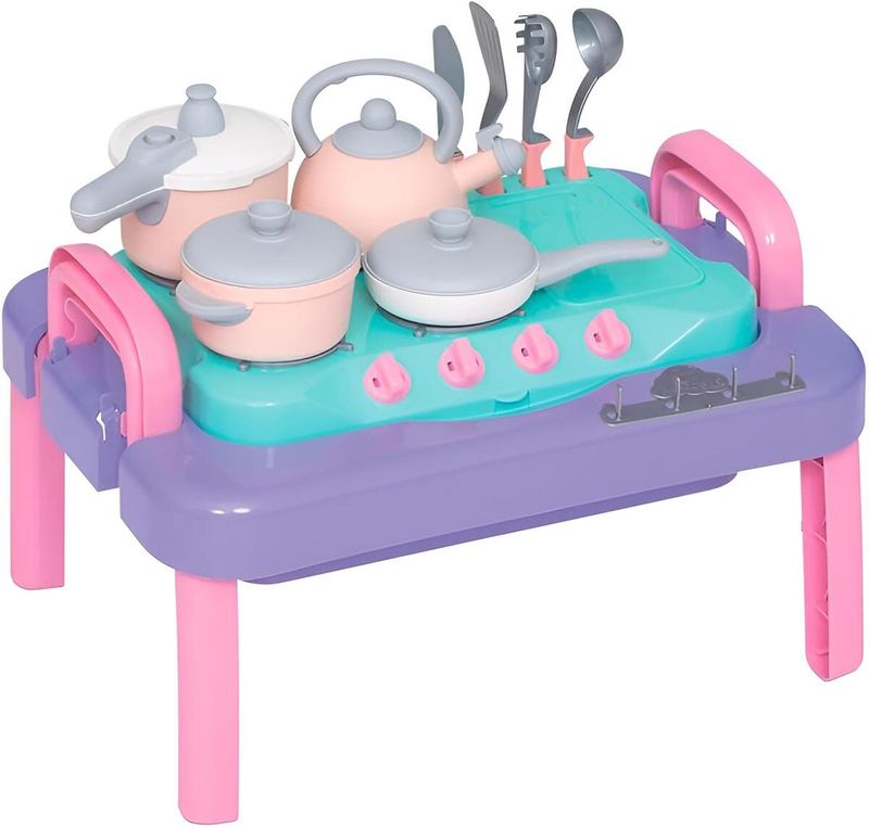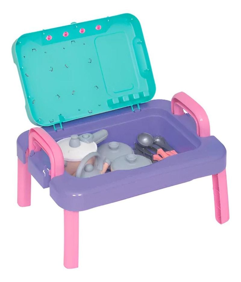A Mesinha Baby Gourmet Charmosa da Mercotoys é perfeita para levar as crianças ao mundo do faz de conta com muita imaginação e diversão! Com design colorido e cheio de detalhes, a mesinha simula uma verdadeira cozinha, estimulando a criatividade e o aprendizado através da brincadeira. Possui 4 bocas de fogão, botões que imitam os sons reais de fogão (tec-tec), espaço para corte de alimentos, tampo que abre e compartimentos para organizar utensílios.