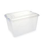 O Organizador 50 Litros Plasvale é fabricado em material resistente e atóxico BPA Free. Possui travas de segurança que mantém o conteúdo vedado, além de proporcionar maior segurança na hora de transportar. Seu corpo transparente facilita a visualização do conteúdo. O tamanho perfeito para você que precisa de bastante espaço para organizar e guardar. Funcionais, podem ser utilizados para armazenar roupas de cama, toalhas, roupas, calçados, brinquedos, livros, ferramentas e demais objetos que preferir. Qualidade e segurança na hora da organização!