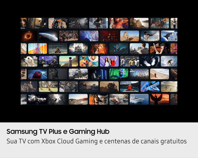 Gaming Hub + Samsung TV Plus. Milhares de jogos via Xbox Cloud Gaming e Nvidia GeForce Now, sem console ou download. Além disso, canais gratuitos de filmes, notícias, esportes, infantil e muito mais.