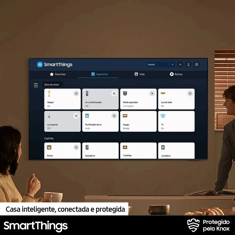 Com a Alexa e o Bixby integrados, você pode comandar a TV com a sua voz em português. Alterar canais, ajustar o volume e acessar aplicativos nunca foi tão simples.
