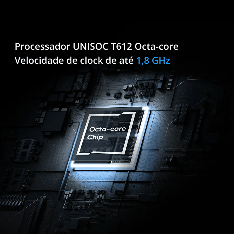 Desempenho eficiente para todas as tarefas. Equipado com o chipset Unisoc T612, o Realme Note 60s oferece funcionamento fluido para multitarefas, redes sociais, estudos, vídeos e jogos casuais. Com RAM dinâmica máxima: 24 GB (até 8 GB + 16 GB de RAM dinâmica), o aparelho entrega respostas rápidas e excelente gerenciamento de memória, mesmo em aplicativos mais exigentes.
