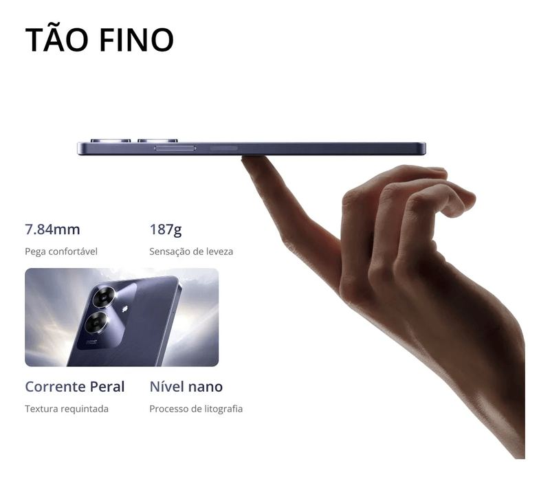 Resistência acima da média. Além do design elegante, o Realme Note 60s foi submetido a testes intensivos de queda, arranhões e durabilidade, tornando-se uma ótima escolha para quem precisa de um aparelho que enfrente os desafios do dia a dia sem perder o estilo.