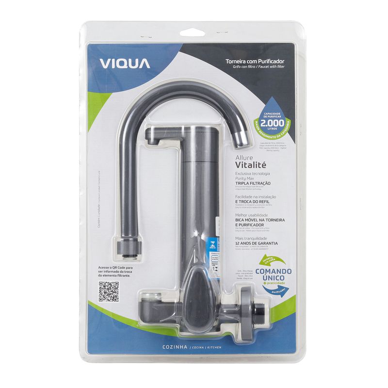 A Torneira de Parede Viqua Allure com Purificador combina sofisticação e funcionalidade para transformar sua cozinha. Com design elegante e acabamento em cinza fosco, ela adiciona um toque contemporâneo ao ambiente. O purificador integrado oferece água limpa e saudável, removendo impurezas, cloro e odores, garantindo mais qualidade de vida para você e sua família. Ideal para quem busca praticidade, estilo e confiança em um único produto.