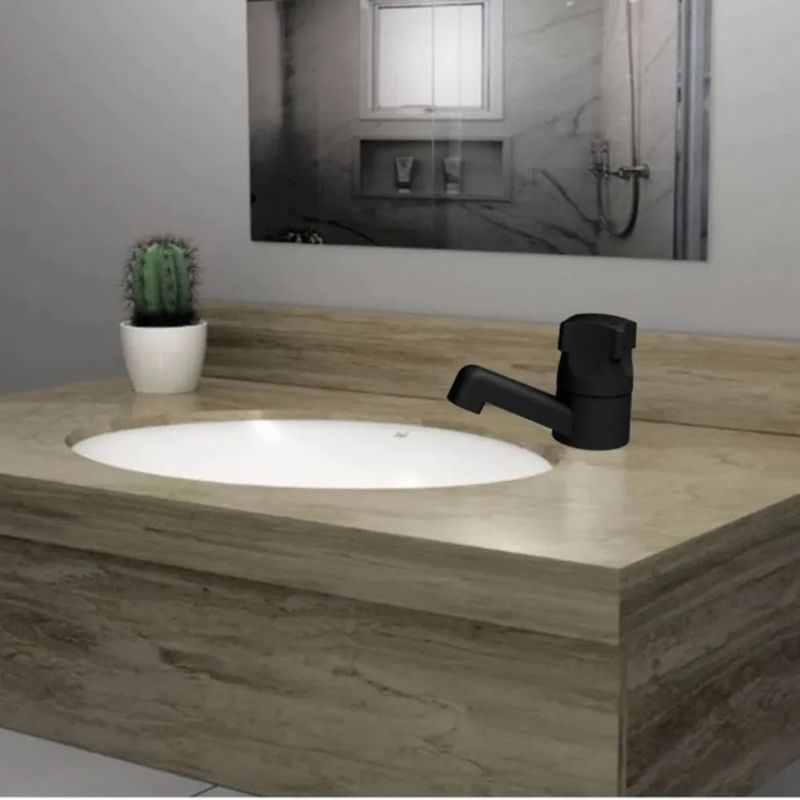 - Instalação de Mesa (bancada) – A torneira é projetada para montagem sobre bancada ou lavatório, facilitando a instalação em ambientes residenciais comuns e garantindo um visual limpo e integrado.